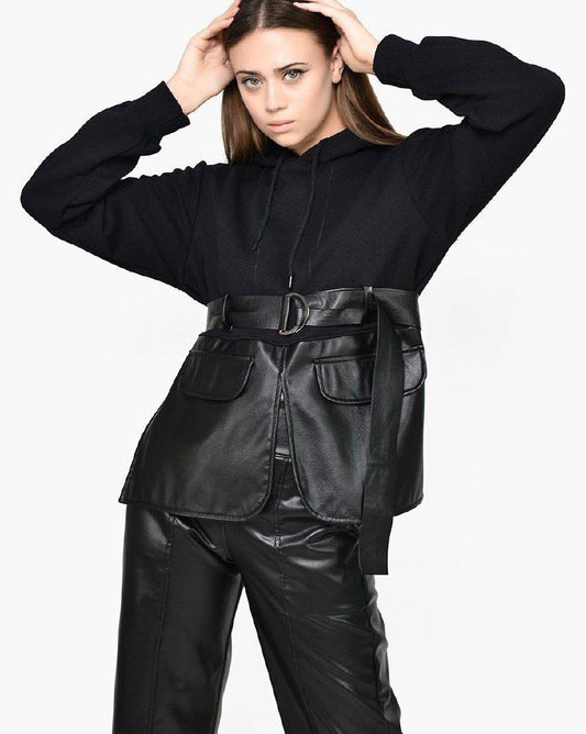 Black Ecopele midi skirt