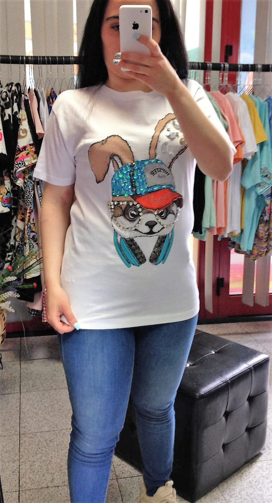T-Shirt with black appliqués